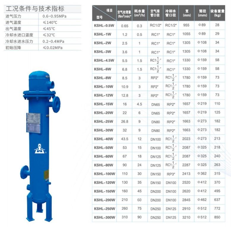 KSHL系列*空气冷却器是空气压缩机主要配套设备,它能将压缩机产生的高温压缩空气进行冷却,采用*翅片铜管,产品具有体积小,冷却效率高,使用方便等特点,能用于高温、高湿和重尘的环境。