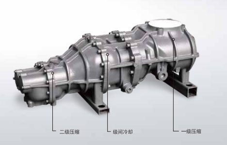 u —级和二级之间有齿轮传动,便于两级转子都调整在*佳的线速 度范围内,效率更高